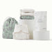 • 1 waterproof drawstring pouch for storing your dirties till laundry day