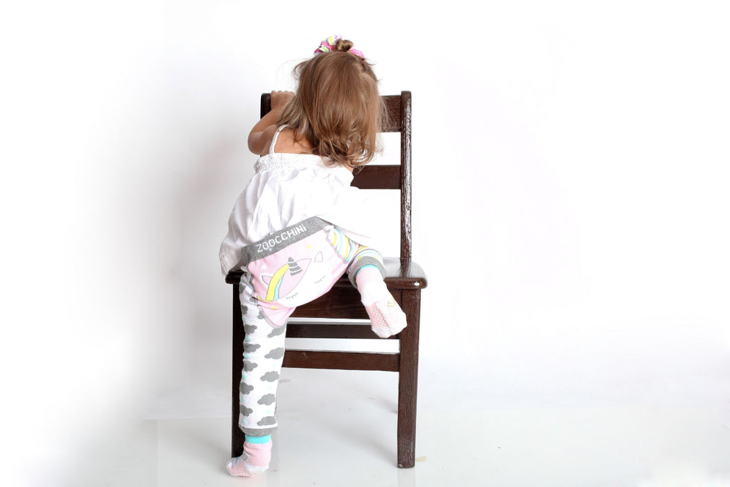Perfect for fluffy cloth diapered bums! Crafted in tube knit and made with a cozy blend of Combed Cotton/Polyamide with spandex for 2-way stretch and flexibility. Cute & stylish, combined with modern, innovative design features, these are better than ordinary footless tights. Mom will love this soft knit that is comfortable for baby and protects your little darlings knees from bruises and scrapes when they are crawling about. Unique silicone gripper designed as knee pads, support and enhance your baby's crawling instincts, and help your baby push along without slipping. They can also be worn by toddlers who climb, jump, or tumble giving them that extra non-slip grip while playing. Extra soft to the touch, stretchy and breathable material, Zoocchini's baby leggings protect your babies sensitive skin.